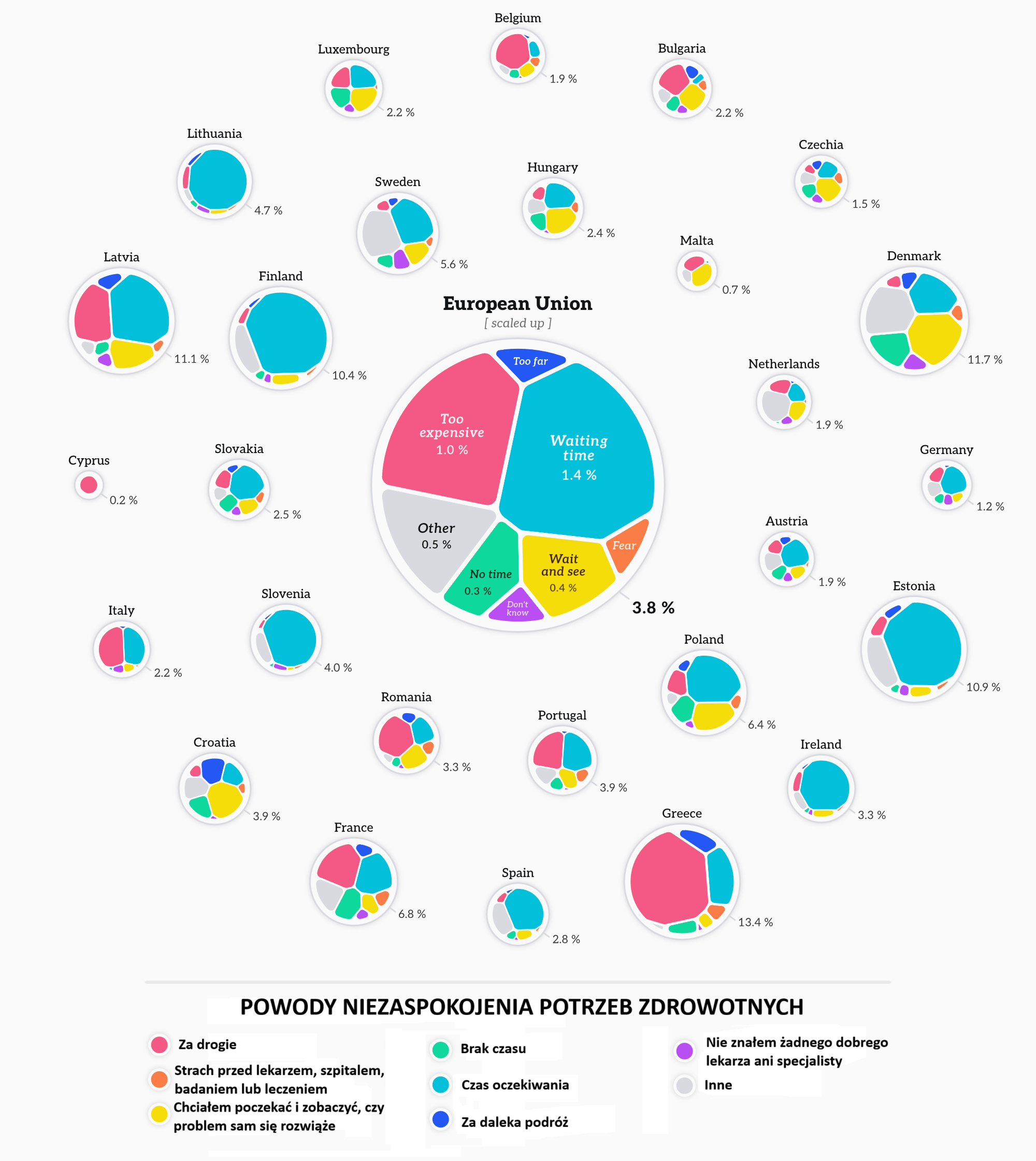 Nawet gdy system oferuje odpowiednie usługi, nie wszyscy pacjenci z nich korzystają. W 2024 roku 3,8% mieszkańców UE powyżej 16. roku życia przyznało, że potrzebowało leczenia, ale go nie otrzymało.