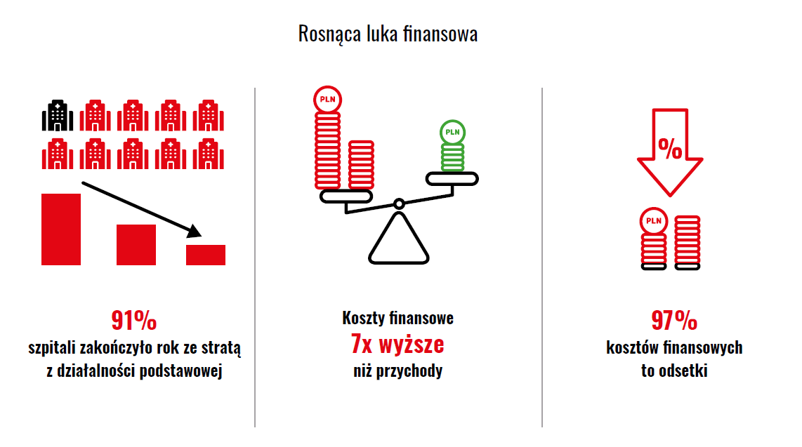 - 91% szpitali zakończyło rok stratą na działalności podstawowej,