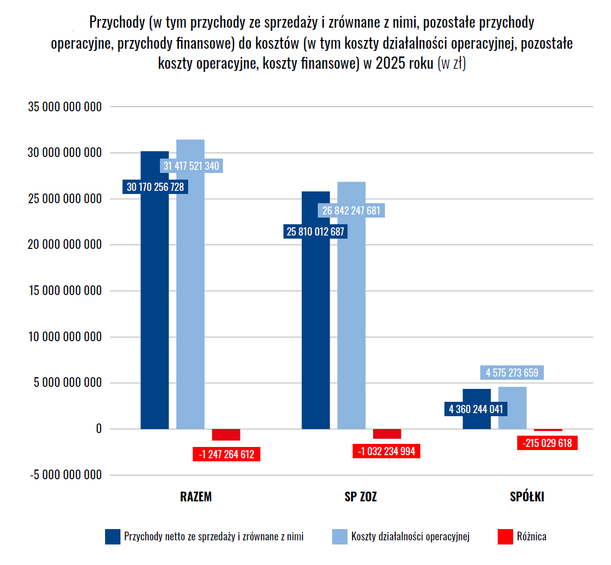 Łączna strata netto wyniosła ponad 1,26 mld zł, a strata ze sprzedaży ponad 1,86 mld zł .