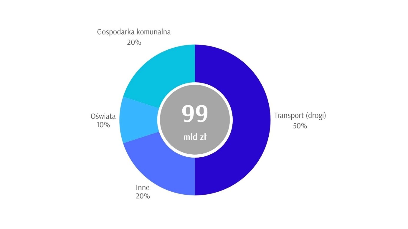 Program przewiduje łączną pulę ok. 99 mld zł na inwestycje samorządowe. W ostatnich latach udział dotacji z „Polskiego Ładu” w strukturze inwestycji JST wzrósł drastycznie – z zaledwie 6% w 2022 r. do blisko 30% w 2024 r.