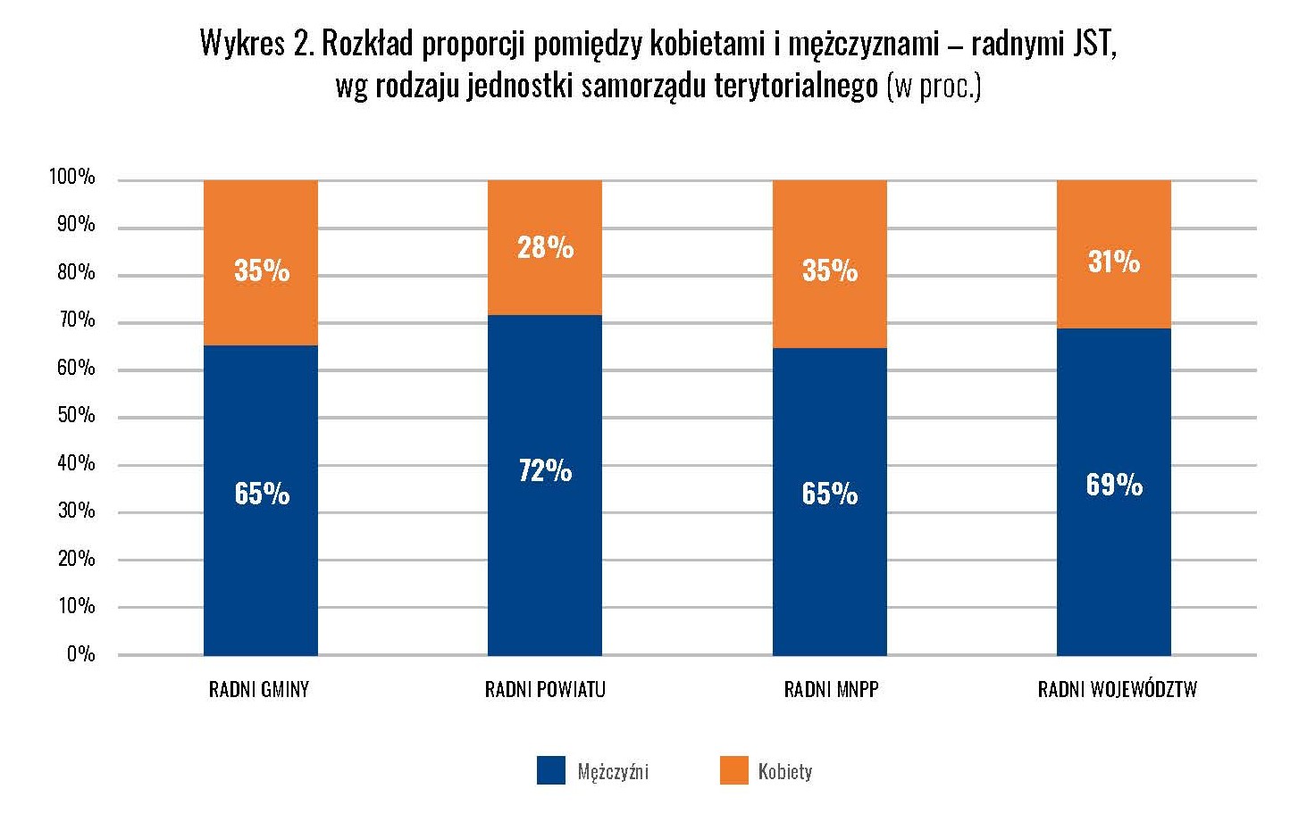 Choć kobiety coraz częściej angażują się w życie publiczne, w samorządach wciąż stanowią mniejszość. W gminach ich udział sięga 35 proc., w miastach na prawach powiatu – tyle samo, w sejmikach wojewódzkich spada do 31 proc., a w radach powiatowych wynosi już tylko 28 proc.