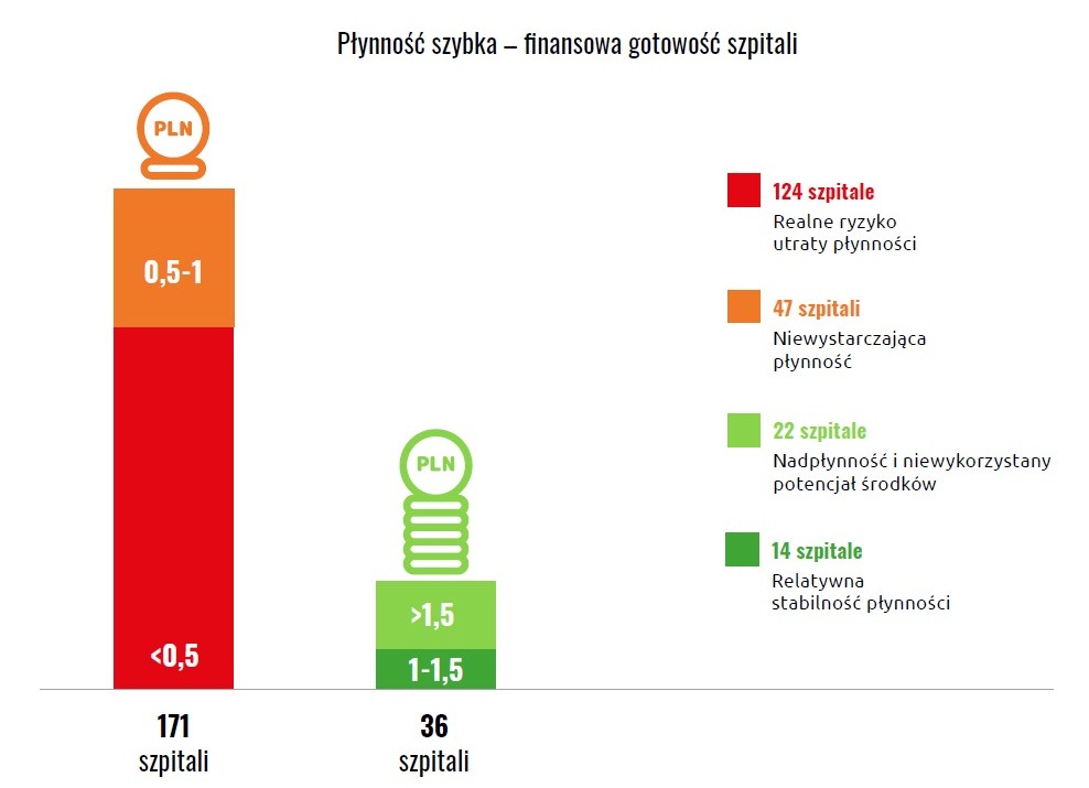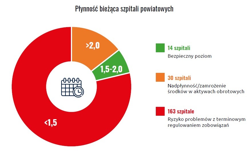 - blisko 79% szpitali ma płynność bieżącą poniżej bezpiecznego poziomu,